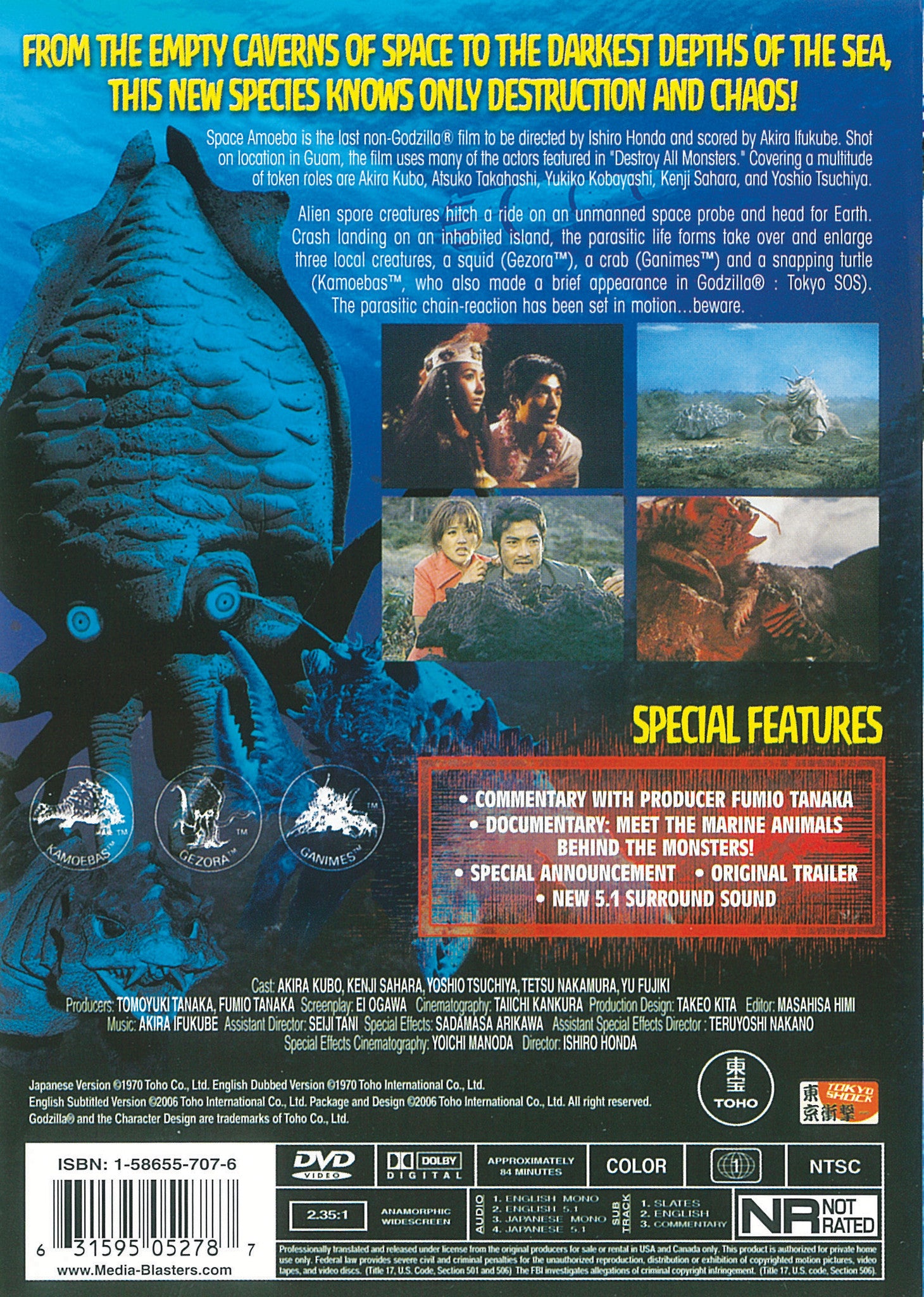From the empty caverns of space to the darkest depths of the sea, this new species knows only destruction and chaos! Space Amoeba is the last non-Godzilla film to be directed by Ishiro Honda and scored by Akira Ifukube.
